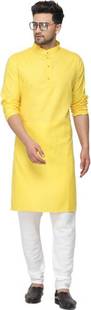 Men Solid Cotton Blend Ethnic Dress (Yellow)