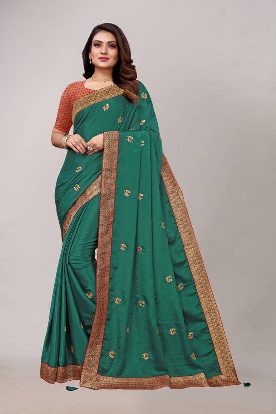 Self Design Bollywood Silk Blend Saree (Green)
