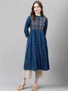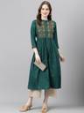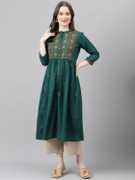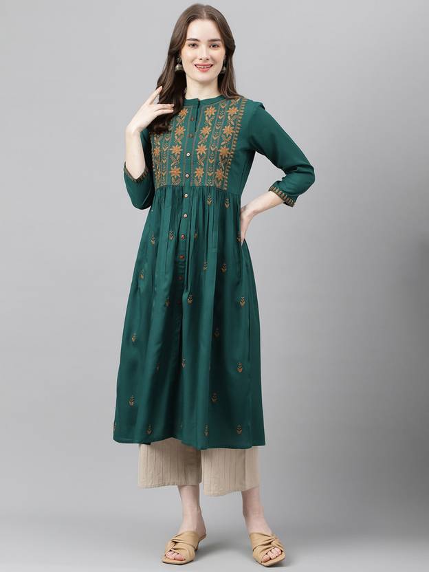 FASHION PATTI Women Embroidered A-line Kurta (Green)