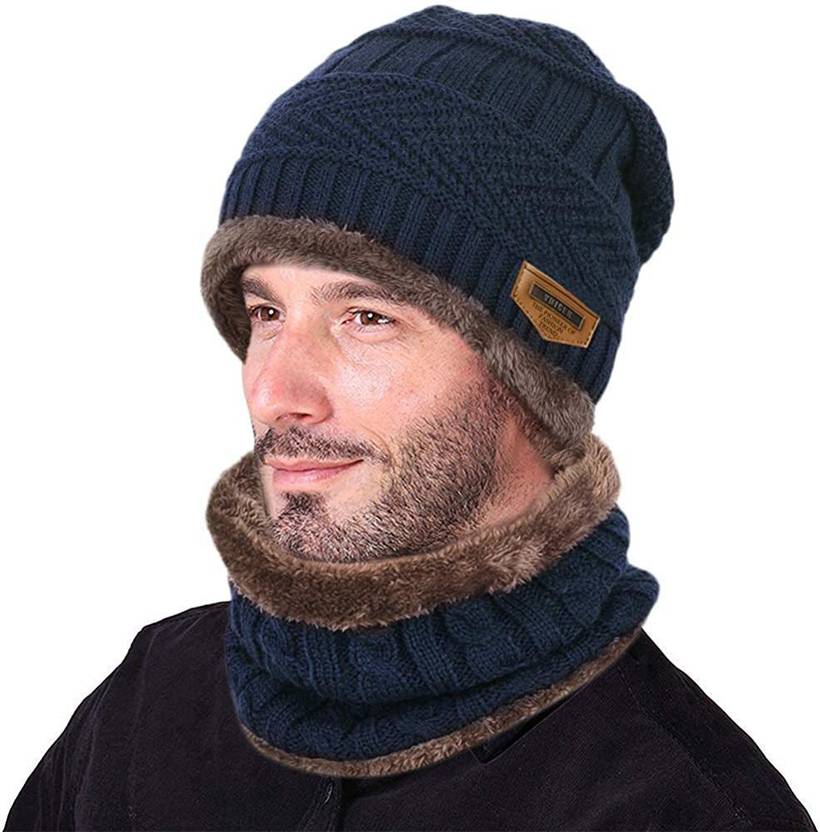 Winter Beanie Hats Scarf Set Warm Knit Hats Skull Cap Neck Warmer with Thick Fleece Lined Winter Hat & Scarf for men/women