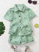 The shirt from this set comes with a buttoned closure and a short sleeve design, making it comfortable and easy to wear. The spread collar adds a smart touch, great for any casual or semi-casual occasion. The shorts, with their elasticated waist, offer a flexible fit that can grow with him, providing comfort during play and movement. The thoughtful design ensures he can move freely while looking effortlessly stylish.