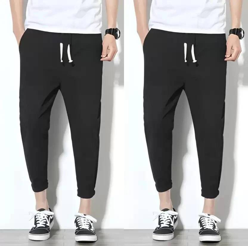 Pack of 2 Men Solid Black Track Pants