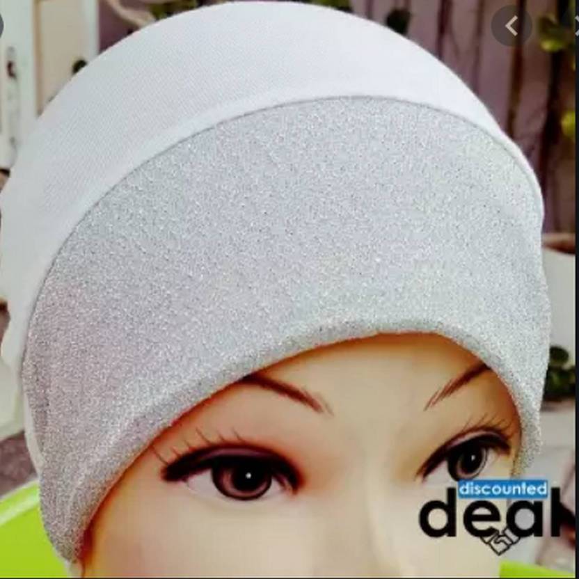 White Shimmer Party Wear Muslim Women & Girls Under Hijab Cap