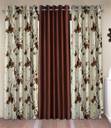 Fashion String 274 cm (9 ft) Long Door Polyester Semi Transparent Curtain (Pack Of 3) (Brown, Floral)