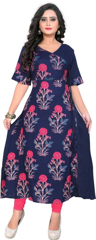 Women Floral Print Cotton Blend A-line Kurta (Blue)