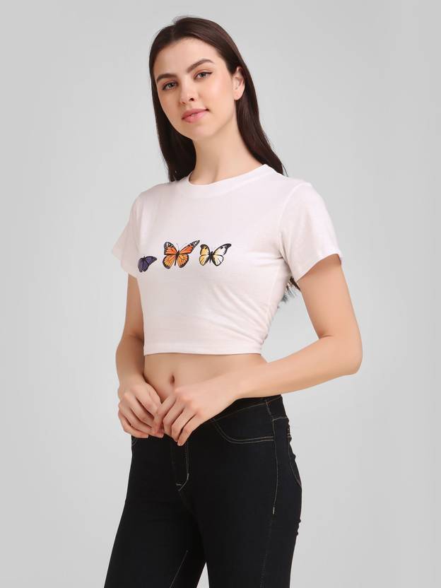 FASHION TAK women crop top white color crop length short sleeve round neck good quality with affordable price.