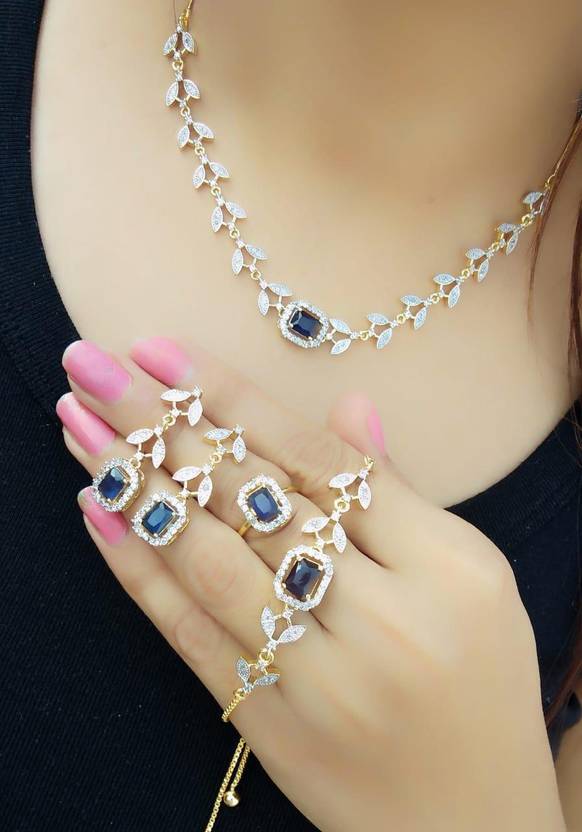 FASHION TITHI Alloy Gold, Blue Jewel Set (Pack of 1)