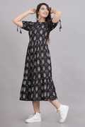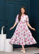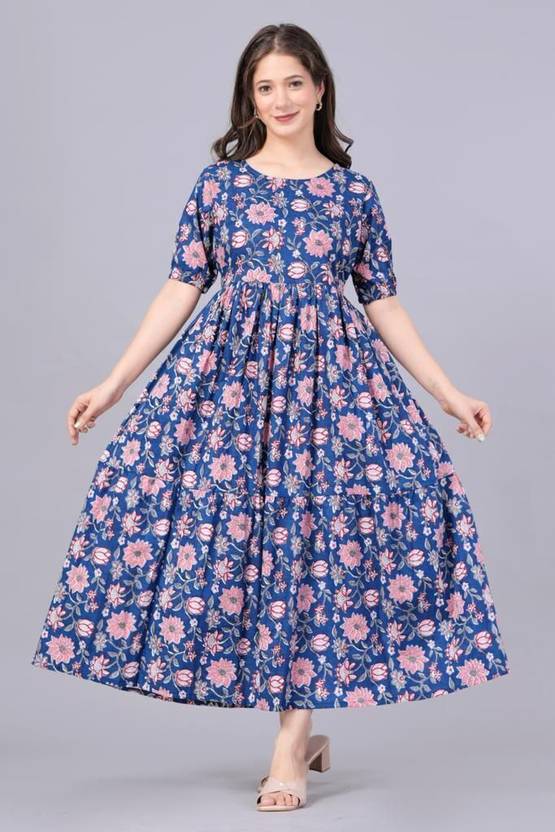 An ideal pick for traditional events and parties, this fashionable dress has been designed to perfection for a dash of style and tailored from finest fabric. This dress is a must have in a Women's ethnic wardrobe. It will improve your look and make you the centre of attraction at any occasion.
