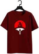 Men Printed Round Neck Pure Cotton Maroon T-Shirt