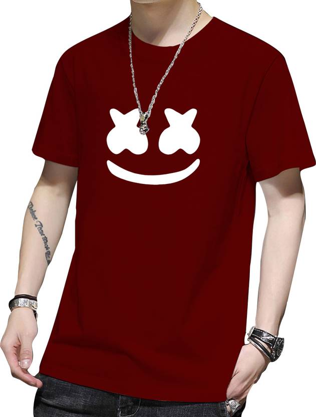 Fashion And Youth Printed Men Round Neck Maroon T-Shirt
