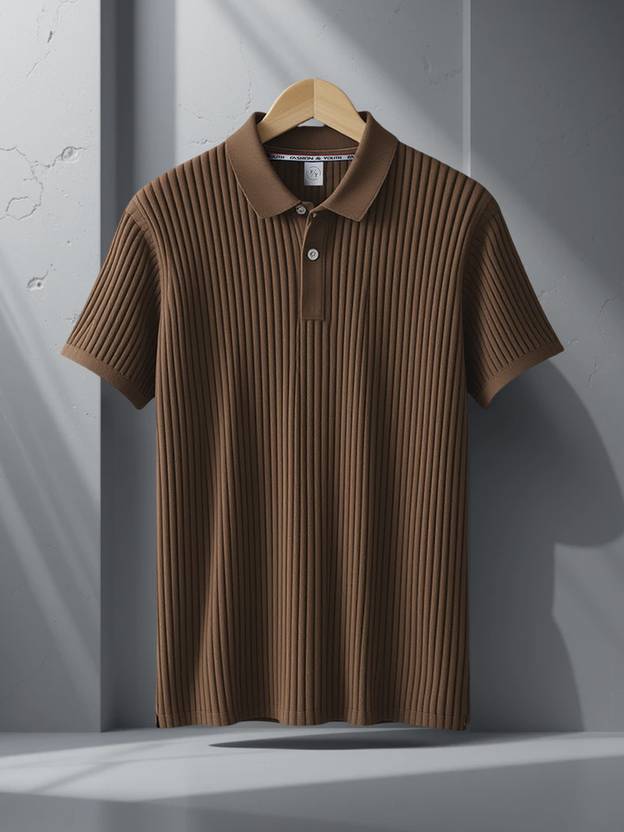 Fashion And Youth Men Self Design Polo Neck Cotton Blend Brown T-Shirt