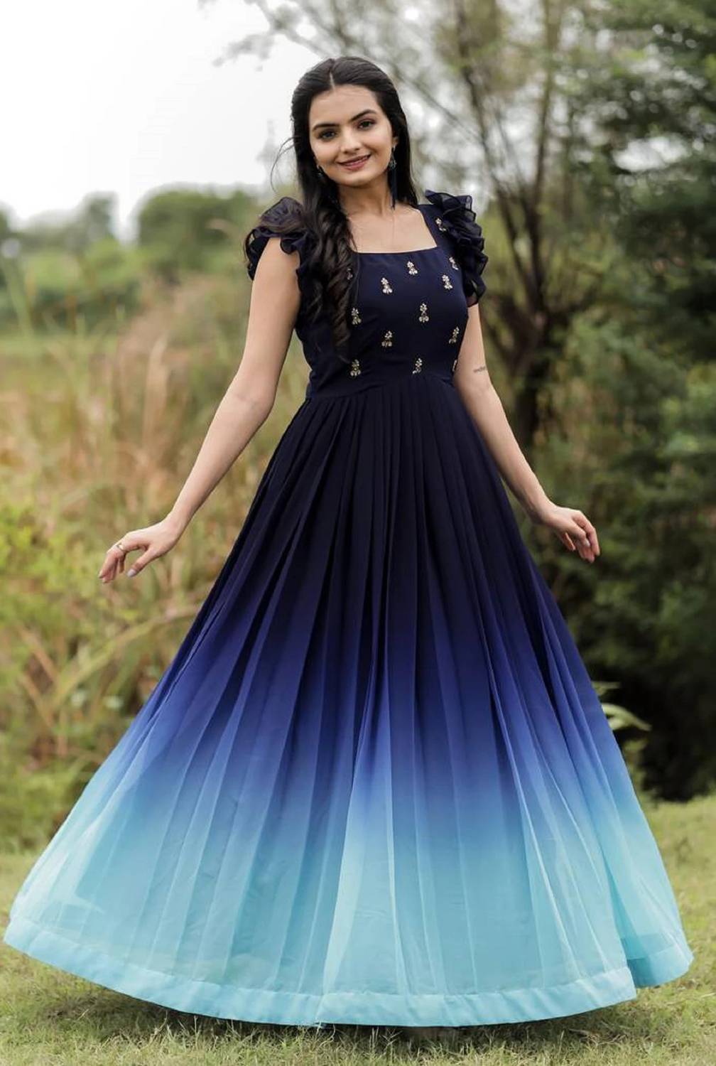 Elegant, flowy, and effortlessly graceful—a Georgette ethnic gown for women is the epitome of timeless charm. Crafted from lightweight, sheer georgette fabric, it drapes beautifully, offering a flattering silhouette that moves with fluid ease. The gown often features intricate embellishments like embroidery, sequins, or zari work, adding a touch of regal sophistication to its delicate texture. Whether adorned with traditional motifs or modern design elements, it strikes a perfect balance between cultural heritage and contemporary fashion. Ideal for festive occasions, weddings, or evening celebrations, this gown promises to make every woman feel like royalty with its blend of comfort and couture flair.