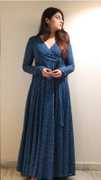 Featuring a flattering V-neckline and short sleeves, this dress offers both style and comfort. The full-length cut enhances its elegant silhouette, making it good choice for formal gatherings or evening events. Owing to its wrap-around style, it allows for easy adjustment, providing a personalised fit. The thoughtful design ensures that you look chic while feeling at ease, whether you're attending a family gathering or enjoying an evening out with friends.