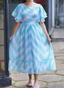 Fashion2wear Women Fit and Flare Light Blue, White Midi/Calf Length Dress