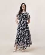 Thanks to the soft georgette fabric, this dress is both lightweight and breathable, making it an ideal choice for warm weather. The fabric drapes beautifully, offering a graceful and smooth look. And, its breathable nature ensures comfort, while the slight shine adds an elegant touch to the overall design. Moreover, georgette provides a fluid and flattering appearance, making it suitable for both day and evening occasions.