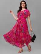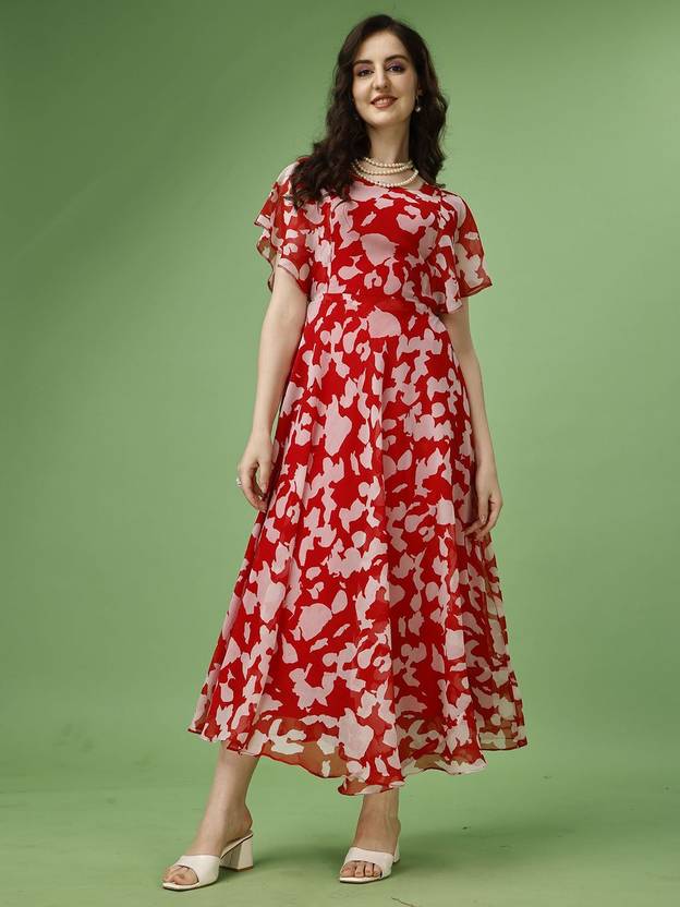 Fashion2wear Women Fit and Flare Red, Pink Maxi/Full Length Dress