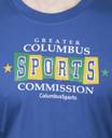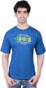 Fashionable Blue color round neck T-shirt with columbus printing in 100% cotton fabric for mens