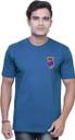 Fashionable Blue color round neck Plain T-shirt with logo in 100% cotton fabric for mens