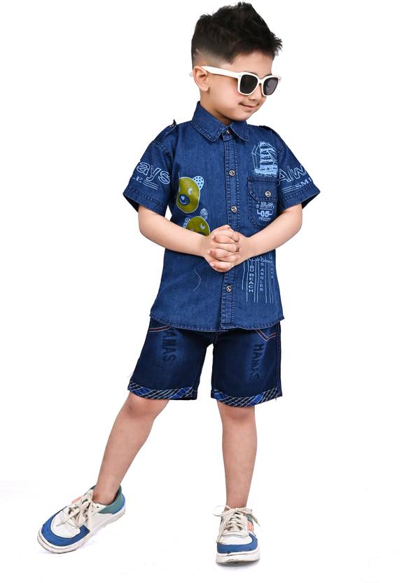 Fashioncore Boys Mickey Casual Shirt Shorts (Denim Blue)