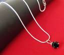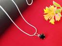 • Latest Black Round design Crystal Pendant With Micro Silver Polished Chain