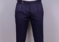 Featuring practical design elements, these trousers combine style with functionality. The distinctive Gurkha-style waistband with adjustable buckle closures provides a customisable fit and adds a unique touch to the overall design. Up to three pockets, including a button-closure back pocket, offer convenient storage options while maintaining a clean, streamlined appearance.