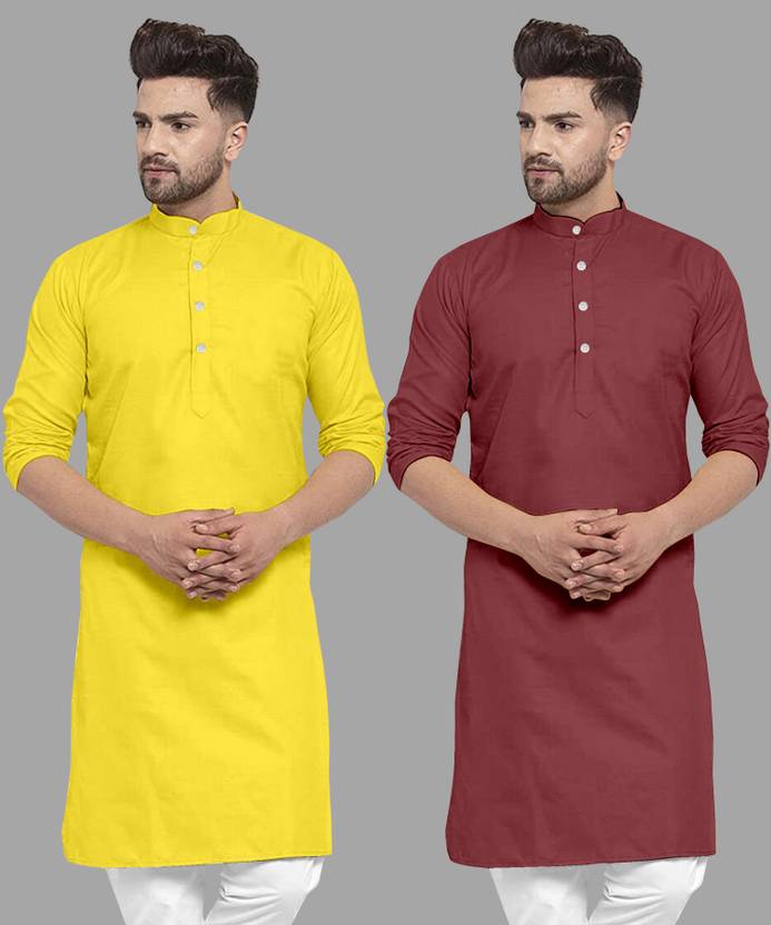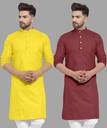 FASHIONFRICKSS Pack of 2 Men Solid Cotton Blend Straight Kurta (Maroon, Yellow)