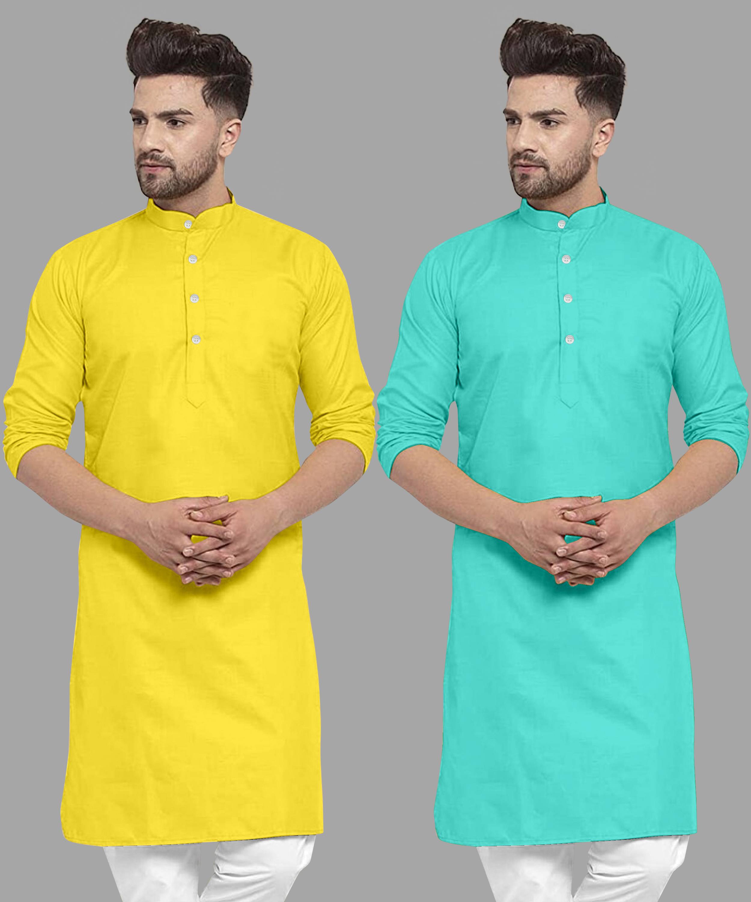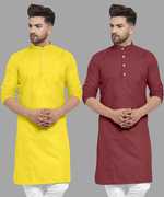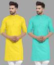 Pack of 2 Men Solid Cotton Blend Straight Kurta (Multicolor)