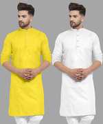 FASHIONFRICKSS Pack of 2 Men Solid Cotton Blend Straight Kurta (White)