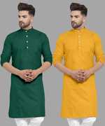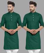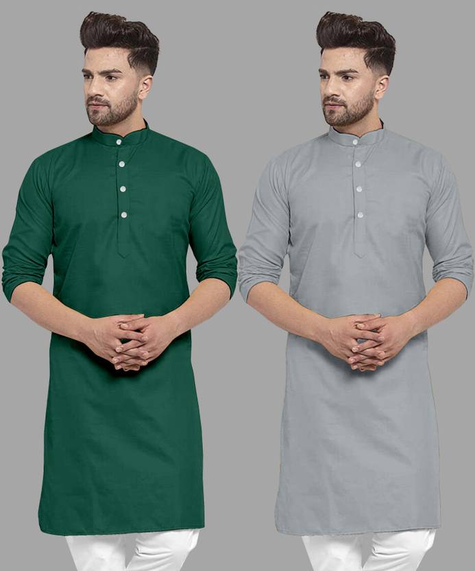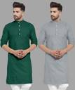 Pack of 2 Men Solid Cotton Blend Straight Kurta (Grey, Green)