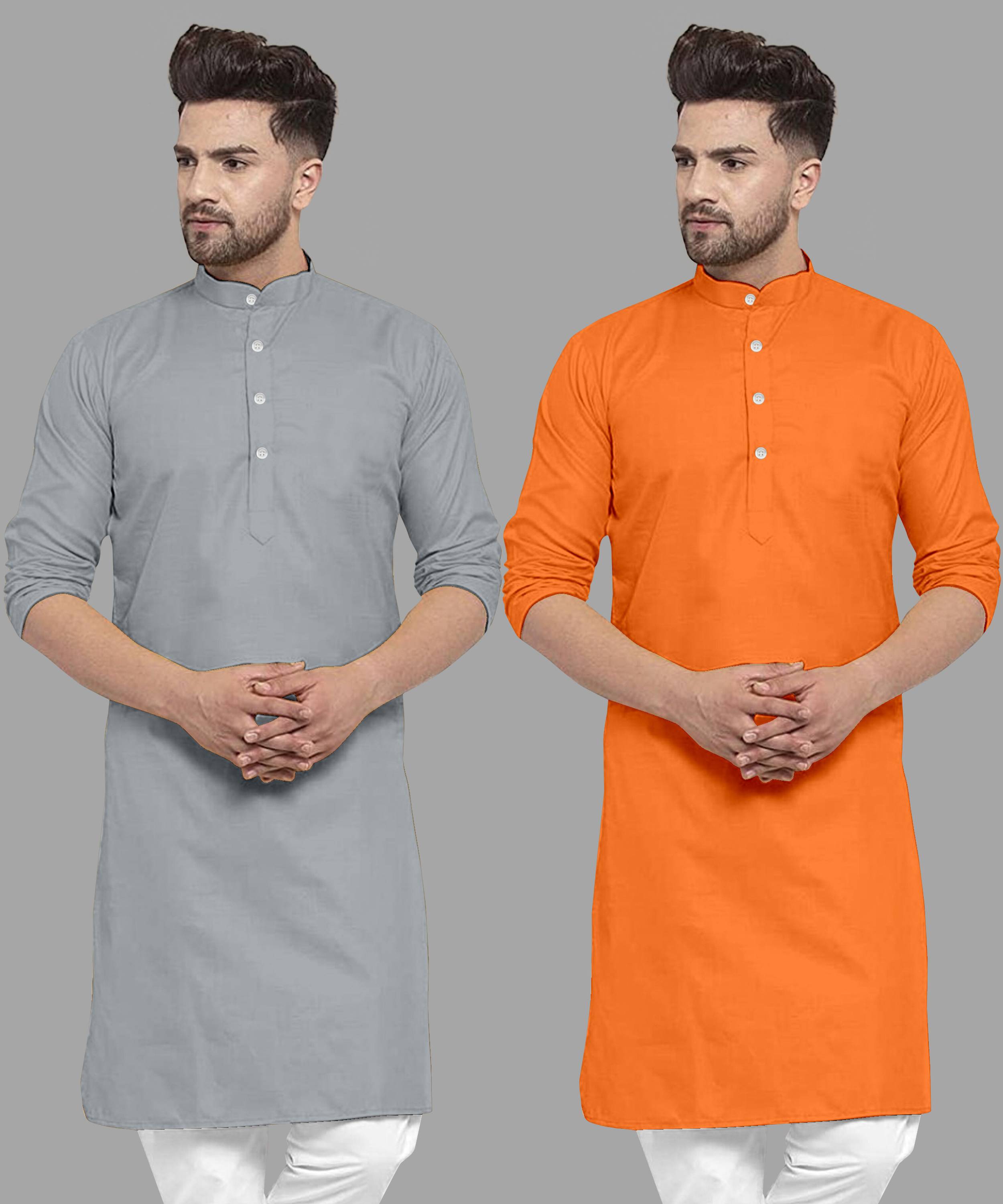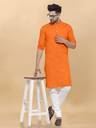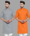 Pack of 2 Men Solid Cotton Blend Straight Kurta (Orange)