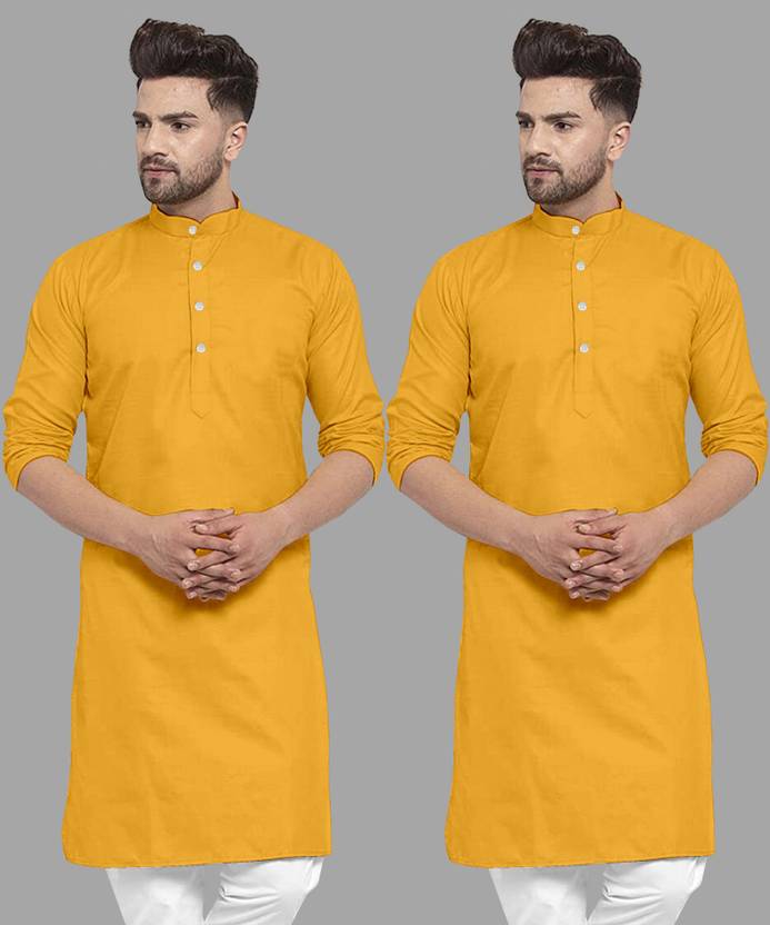 FASHIONFRICKSS Men Solid Straight Kurta (Yellow)