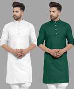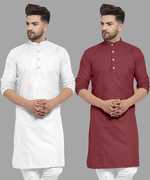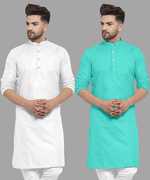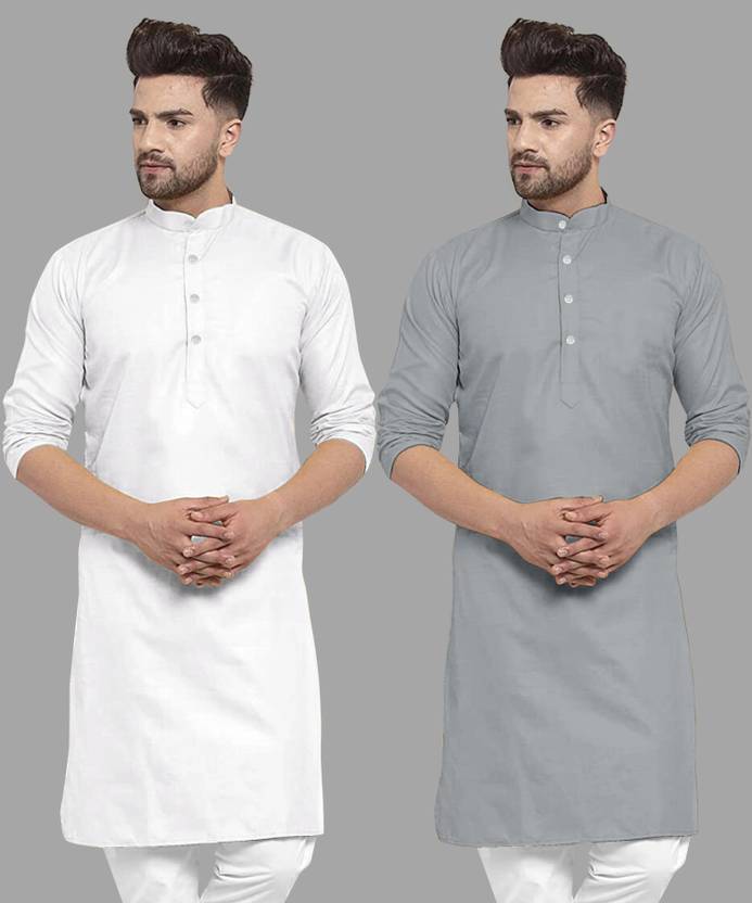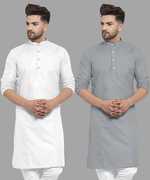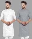 FASHIONFRICKSS Pack of 2 Men Solid Cotton Blend Straight Kurta (Grey, White)