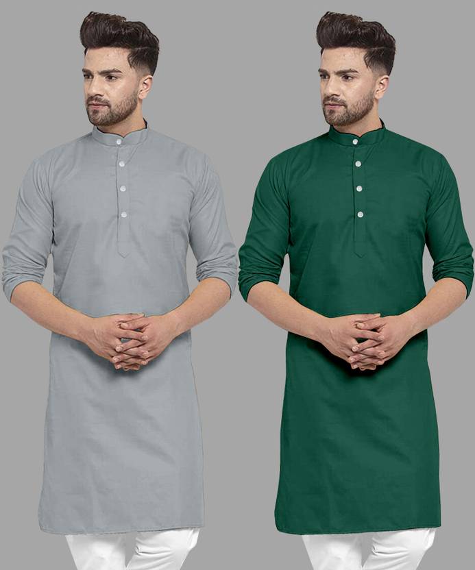 FASHIONFRICKSS Pack of 2 Men Solid Cotton Blend Straight Kurta (Dark Green)