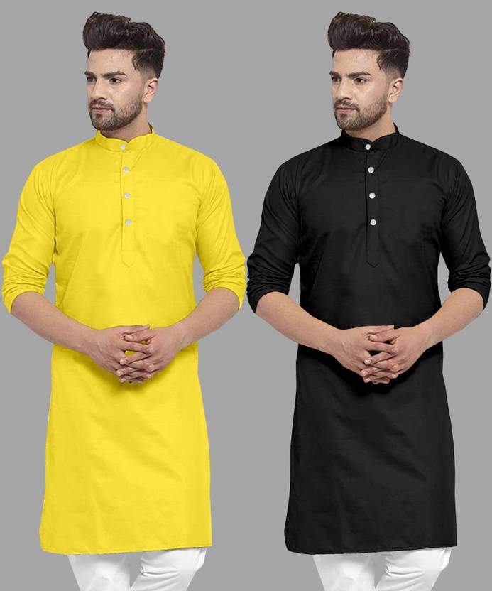 FASHIONFRICKSS Men Solid Straight Kurta (Black)