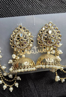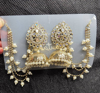 FashionFuse Fashionfuse "Royal Kundan Jhumka Earrings with Pearl Sahara Chains Pearl Alloy Chandbali Earring
