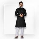 LYPLO Men Solid Cotton Blend Straight Kurta (Black)