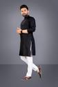 LYPLO Men Solid Cotton Blend Straight Kurta  (Black)