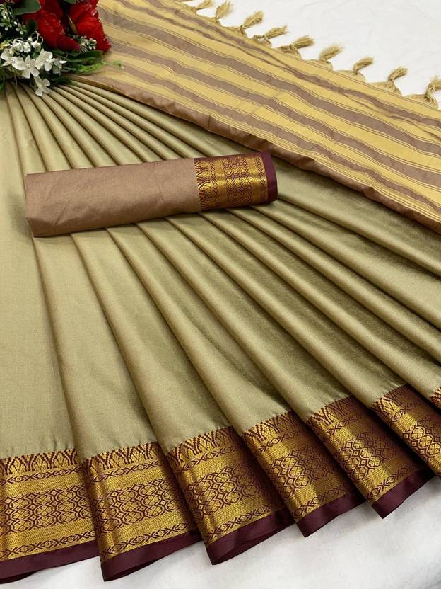 FASHIONVED Checkered Chettinadu Cotton Silk Saree (Maroon, Yellow)