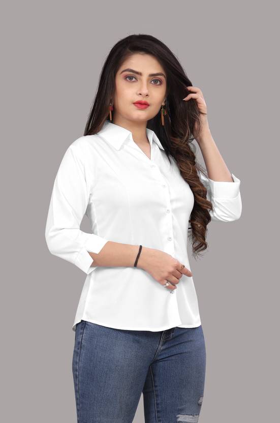Women Regular Fit Solid Spread Collar Casual Shirt
