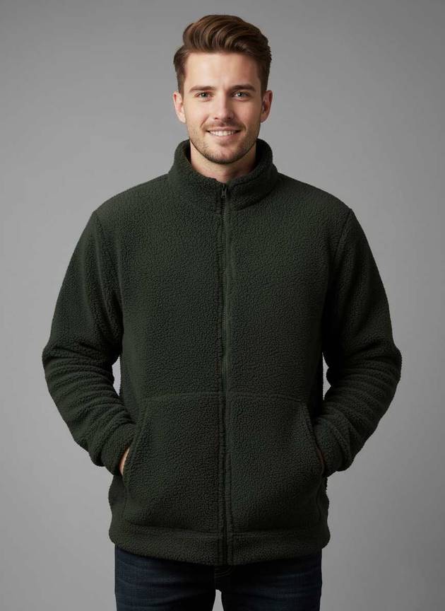 Men Solid Fleece Jacket