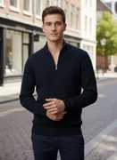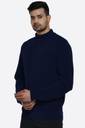 FASHLOOK Solid Men High Neck Navy Blue T-Shirt