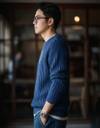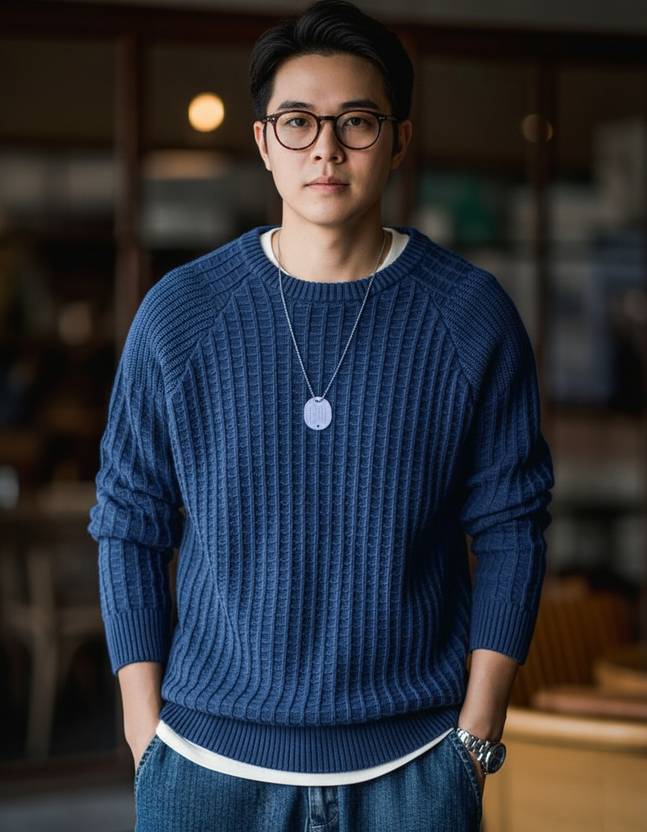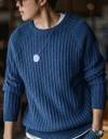 FASHLOOK Solid Round Neck Casual Men Blue Sweater