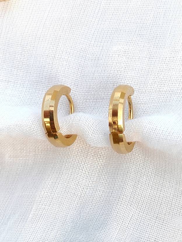 FASHOLICS Premium Ear for men - gold tone glossy – 3 angle Gift For Him Stainless Steel Hoop Earring