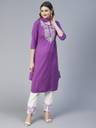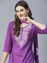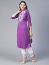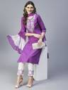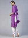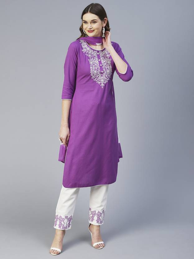 ● Solid Straight Cut Kurta ● Buttons on the Front Placket ● Resham Embroidered Yoke ● Crochet Lace on the Sleeves, Side Slits & Hem ● Paired with Solid Pants ● Resham Embroidered Border on the Hemline ● Styled with Bandhani Dupatta