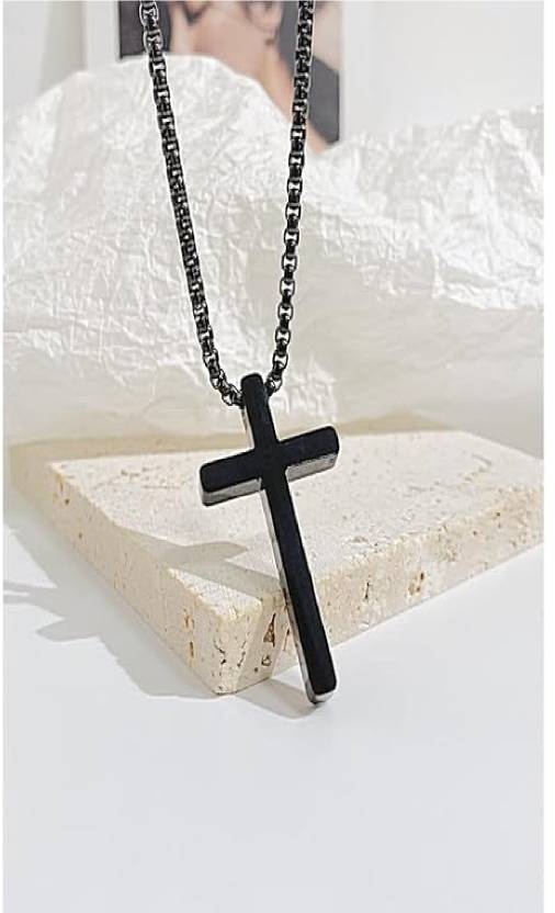 Cross Pendant Chain Necklace Black Color P30