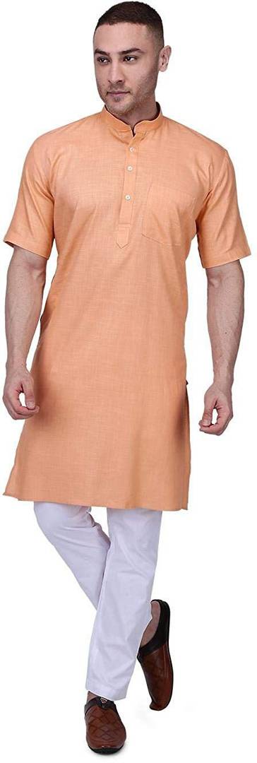 Men Solid Pure Cotton Straight Kurta (Orange)