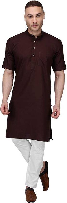 Men Solid Pure Cotton Straight Kurta (Brown)