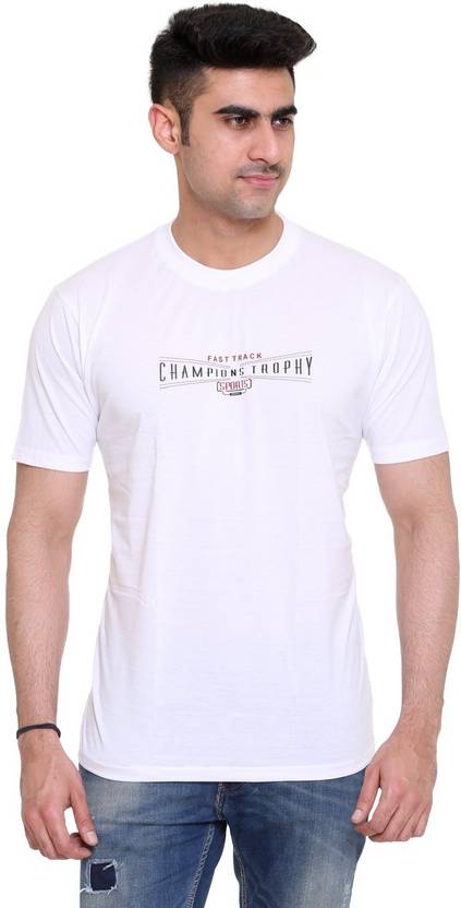 Men Solid Round Neck Cotton Blend White T-Shirt