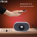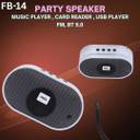 The FASTbond FB-14 is a versatile party speaker designed for entertainment on the go. It features a music player, a card reader, and a USB player, allowing you to enjoy your favorite music from multiple sources. The speaker also includes an FM radio and Bluetooth 5.0 connectivity for seamless wireless streaming. Its white and black color scheme gives it a modern look, and its compact shape makes it easy to carry. The speaker's primary function is to play music, and it is a complete entertainment package for parties or personal use.