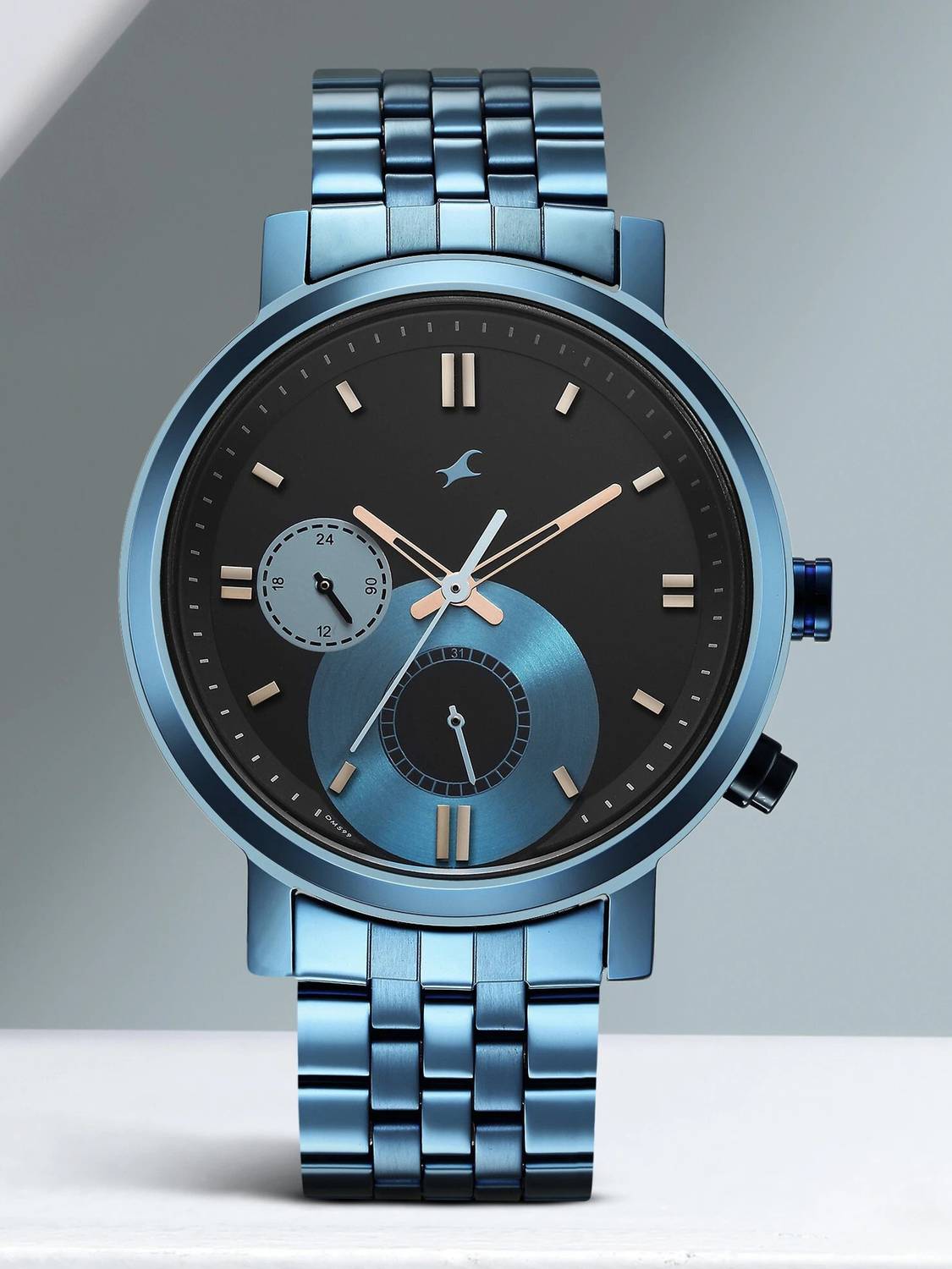 Fastrack TickTock Multifunction Black Dial Blue MetalStrap
